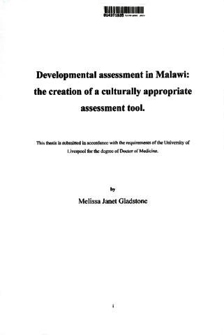 Developmental assessment in Malawi : the creation of a culturally appropriate assessment tool.