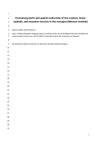 Postnatal growth and spatial conformity of the cranium, brain, eyeballs and masseter muscles in the macaque (Macaca mulatta).