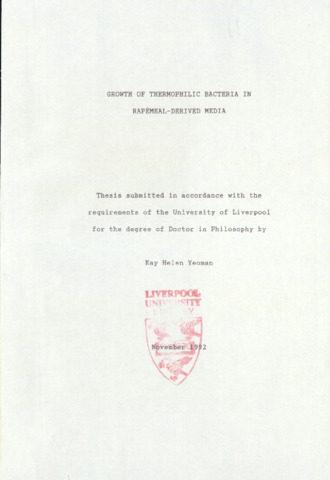 Growth of thermophilic bacteria in rapemeal-derived media.