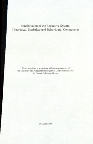 Fractionation of the executive system : theoretical, statistical and behavioural components