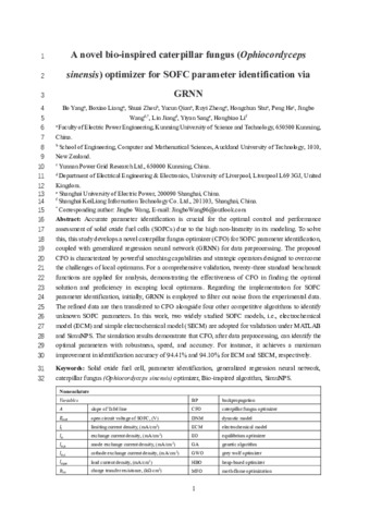 A novel bio-inspired caterpillar fungus (Ophiocordyceps sinensis) optimizer for SOFC parameter identification via GRNN.